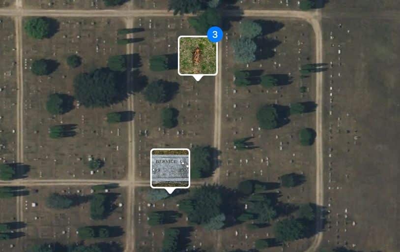 Aerial view of the graves of Ed Gein and Bernice Worden. It is also reported that Ed is buried even closer to some of the graves of people that he dug up.
