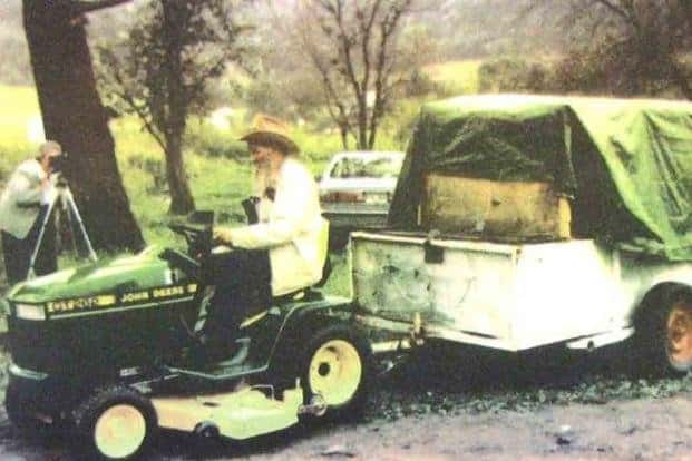 So he did something almost too unbelievable to make up: he hitched a small trailer to his John Deere lawnmower, packed up supplies, and set off on a 240-mile journey across state lines at just 5 miles per hour. It would take him six weeks.
